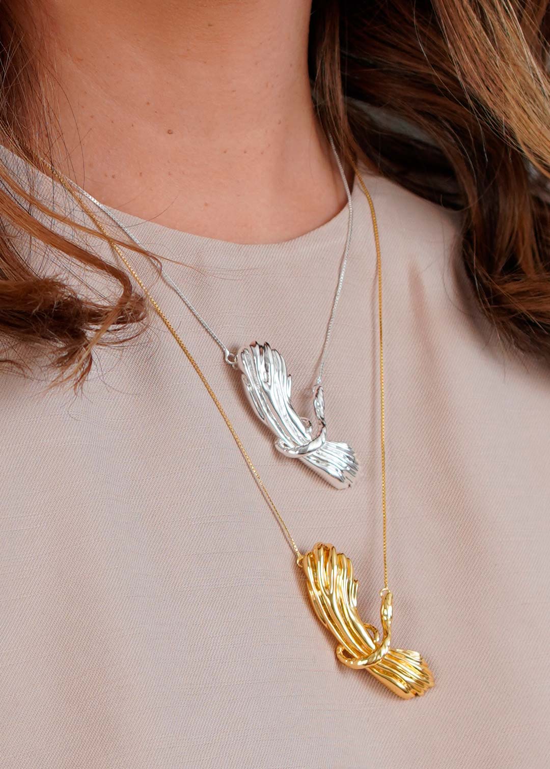 A graceful, fluid pendant sculpted with a wavy texture and gently embraced by a delicate thread — symbolizing life’s journey, shaped and guided by divine presence. Lightweight and adjustable, this piece celebrates strength, faith, and the joy of dancing through life’s moments with radiant enthusiasm.
