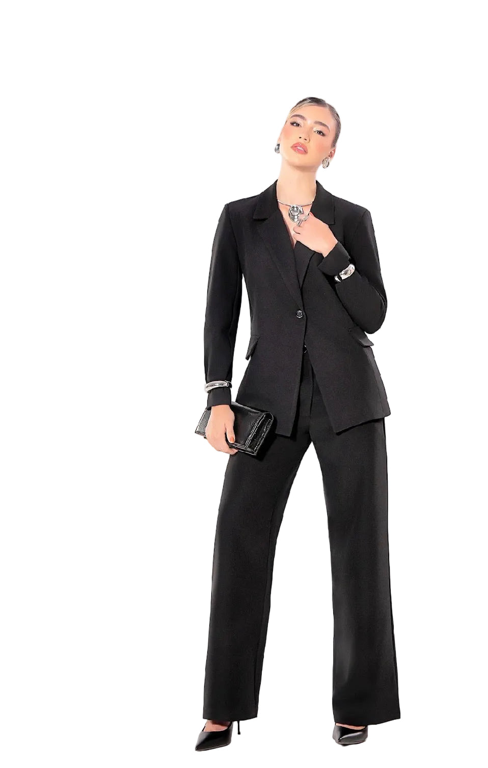 Designed for women who embody confidence and sophistication, this luxury tailored suit set is the ultimate expression of modern power dressing. Featuring a structured blazer with sharp lapels and a flawless tailored fit, it creates a strong yet feminine silhouette.