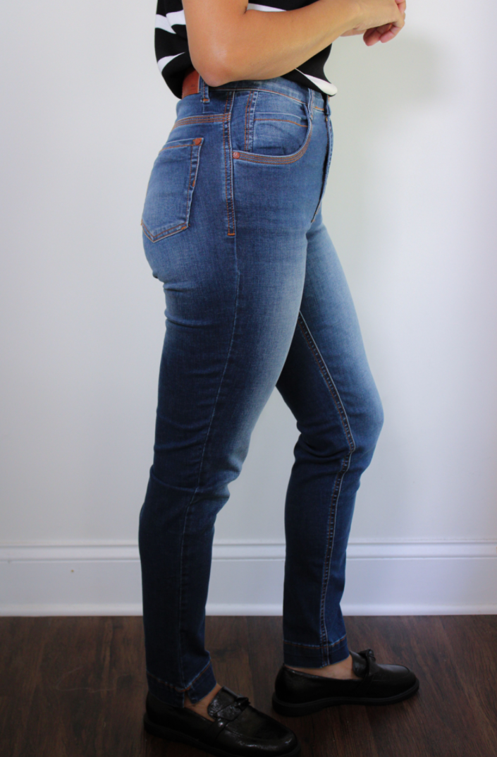 The Sloane Skinny is crafted from deep, dark-wash denim with a sculpted fit that flatters and moves with you. Designed with a clean silhouette and just the right amount of stretch, it’s a modern essential for both day and night. Minimal hardware and a smooth finish make it effortlessly polished.