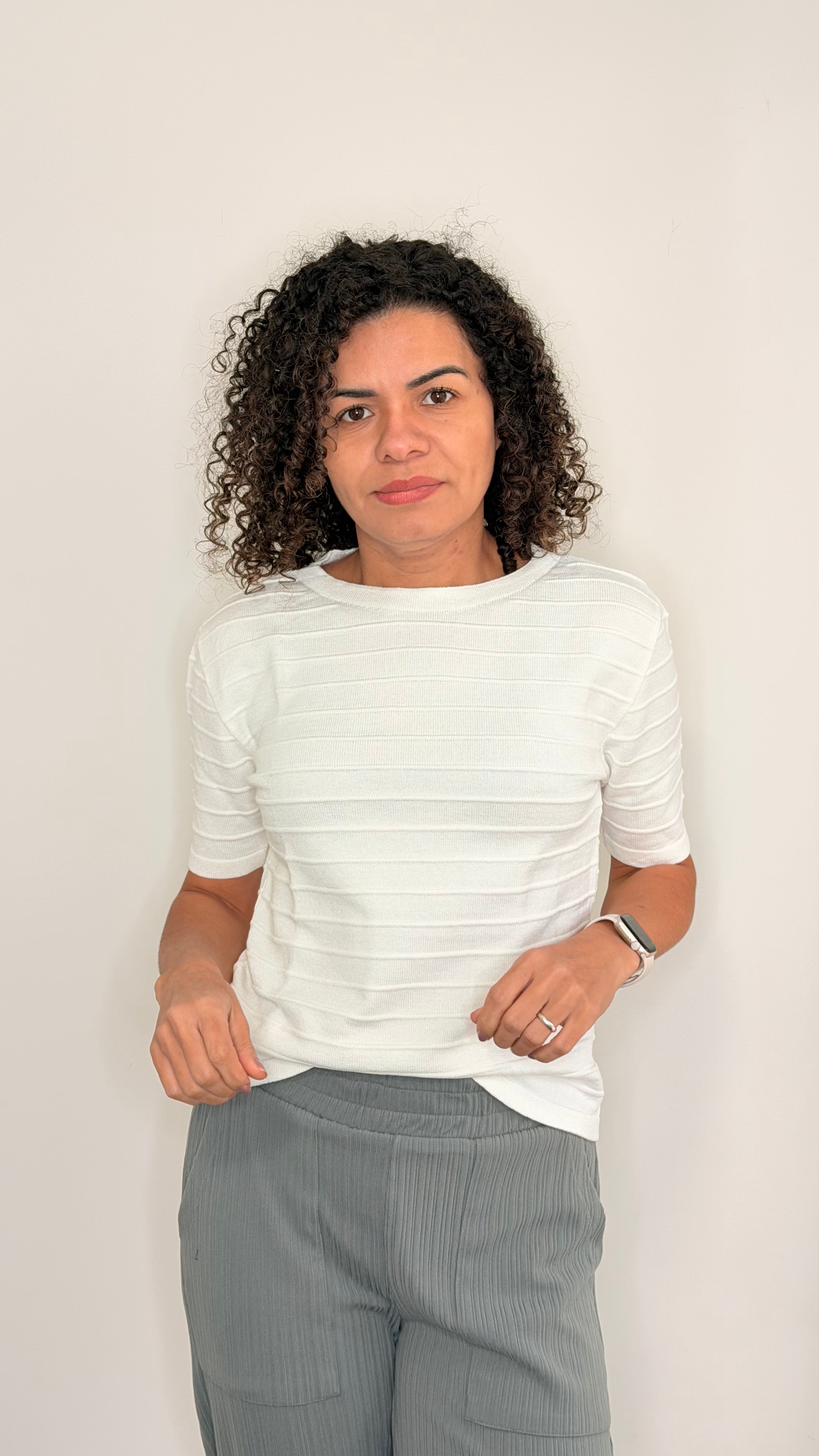The Lined Top is a sleek essential featuring subtle line details running down the shirt for a flattering, elongated look. Available in classic and soft hues, it’s perfect for effortless styling from everyday wear to elevated layering.