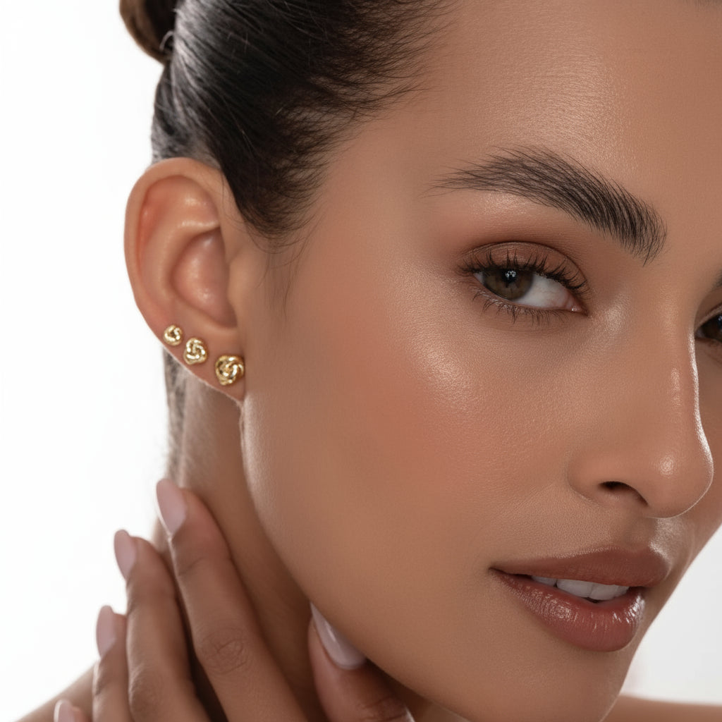The Diamond Blend Knot Earring Trio features three pairs of knot-inspired earrings that blend subtle sparkle with sculptural design. With a polished finish and a modern touch, this set adds effortless elegance to any look — a versatile trio that balances delicacy and sophistication.